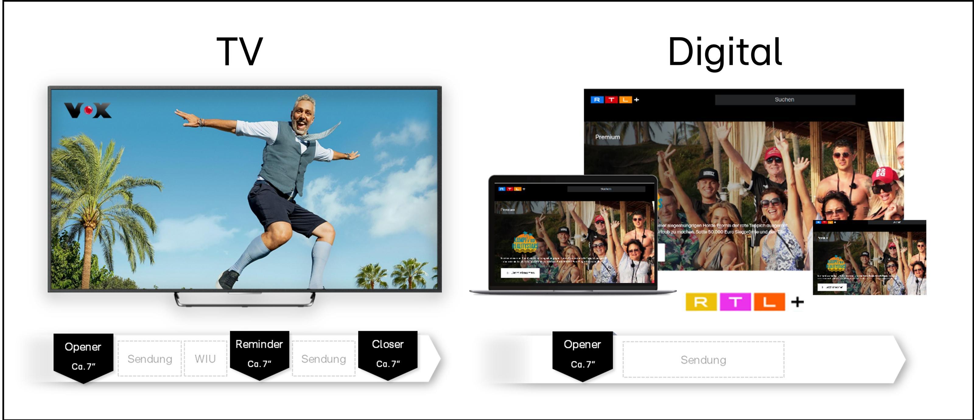 Ein Opener zu Beginn, ein Reminder nach jeder Werbeinsel und ein Closer am Ende des Formats weisen auf Ihr Presenting hin. Zusätzlicher Benefit zur Präsenz und Markenerinnerung ist der positive Imagetransfer.